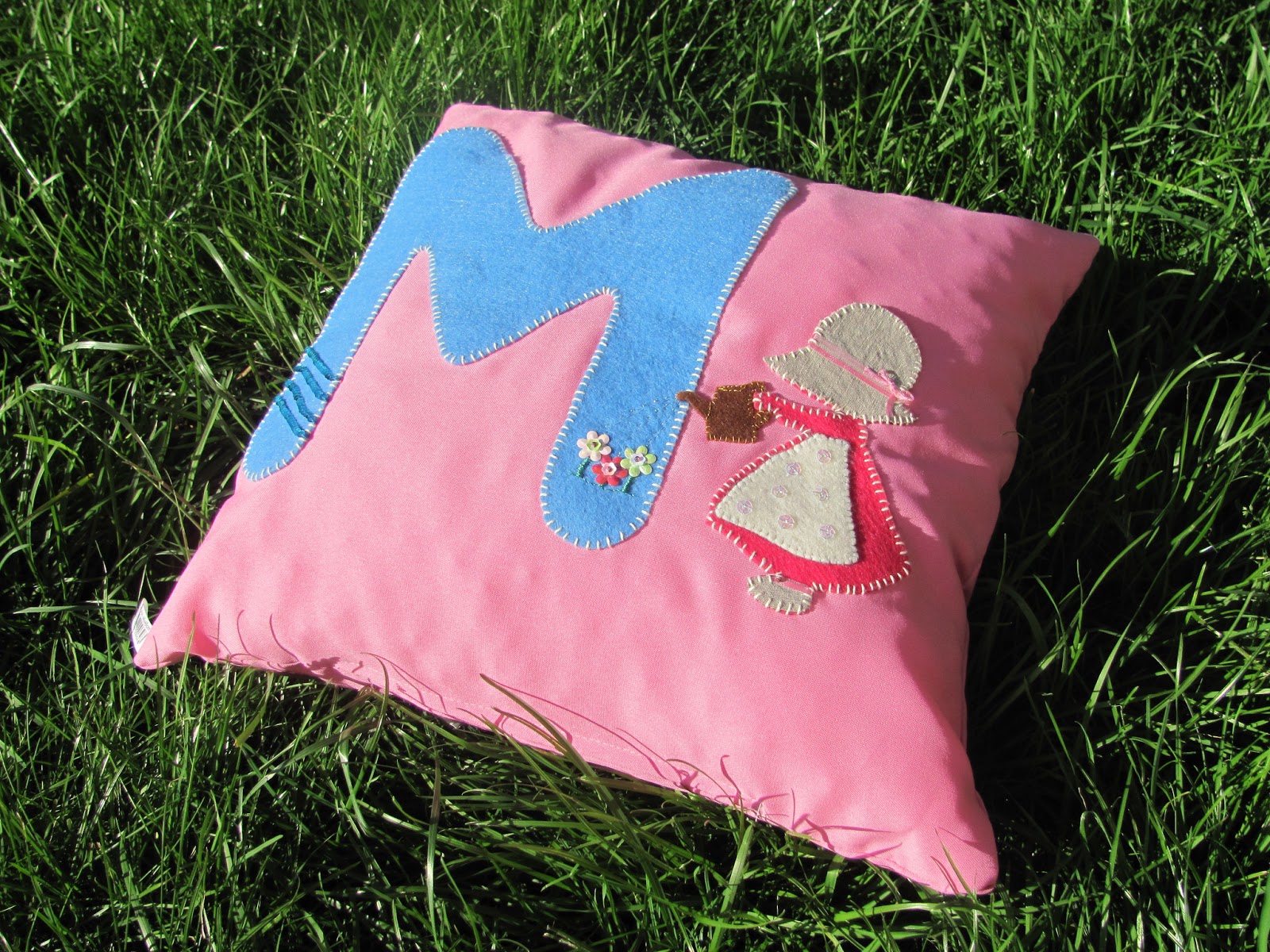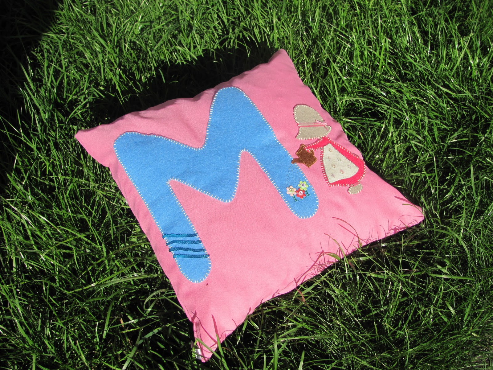 E aqui está o produto final: uma almofada muito especial para a minha menina oferecer à amiguinha M.
